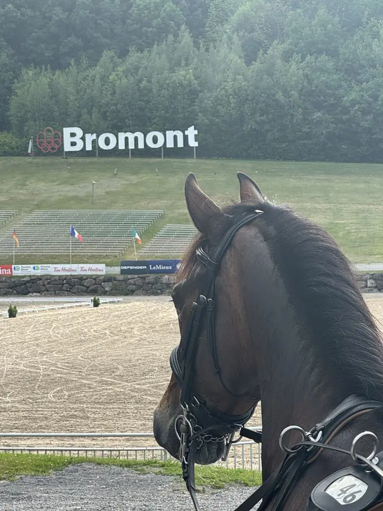 Loretta the horse as seen from the carriage with Bromont sign on a hill in the background. I have not competed at Bromont International CDE in many years. This year we decided to attend based on how many good things we heard from our friends who attended last year. We were not disappointed!